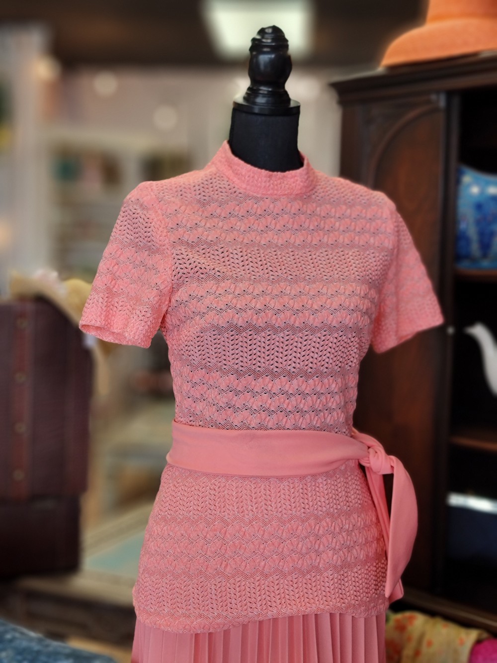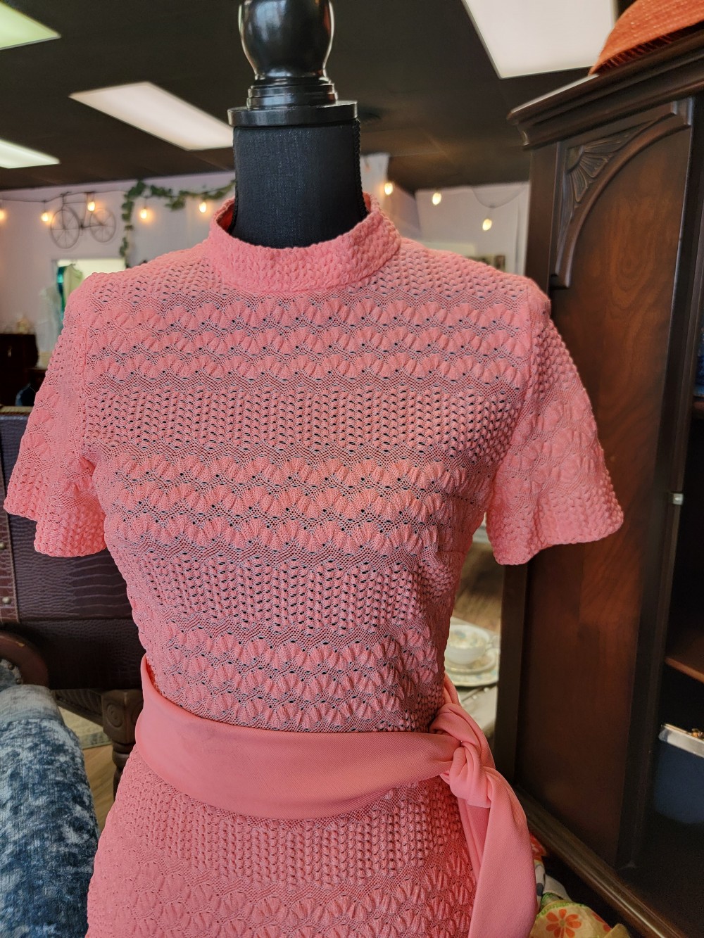 Beautiful coral dress with tie belt. Fits size 2/4.